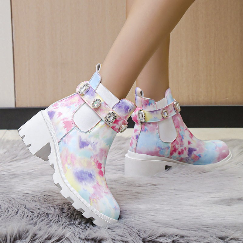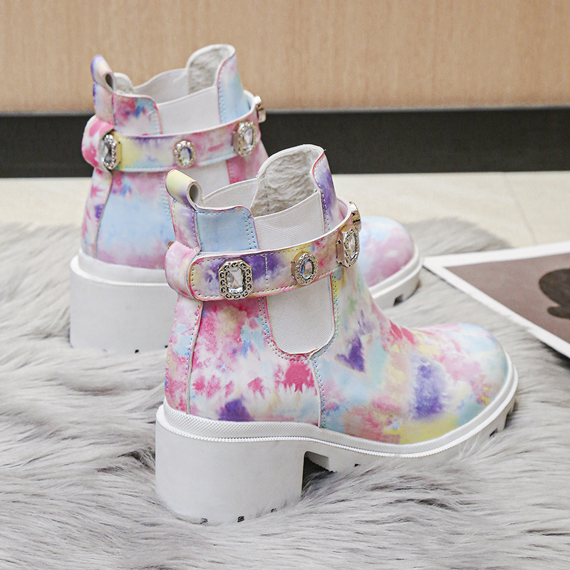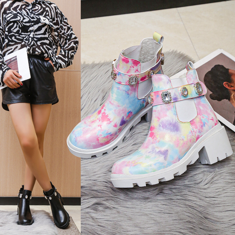 Euro-American Fashion Rhinestone Chunky-heel Trendy Boots