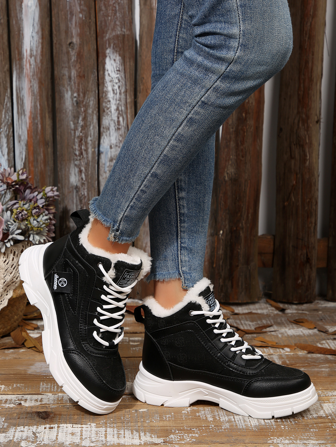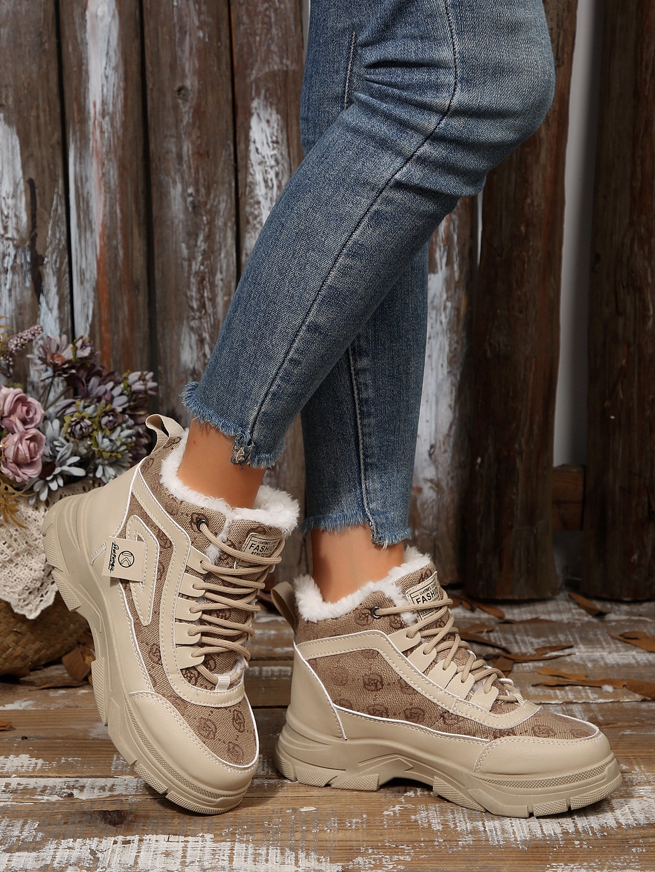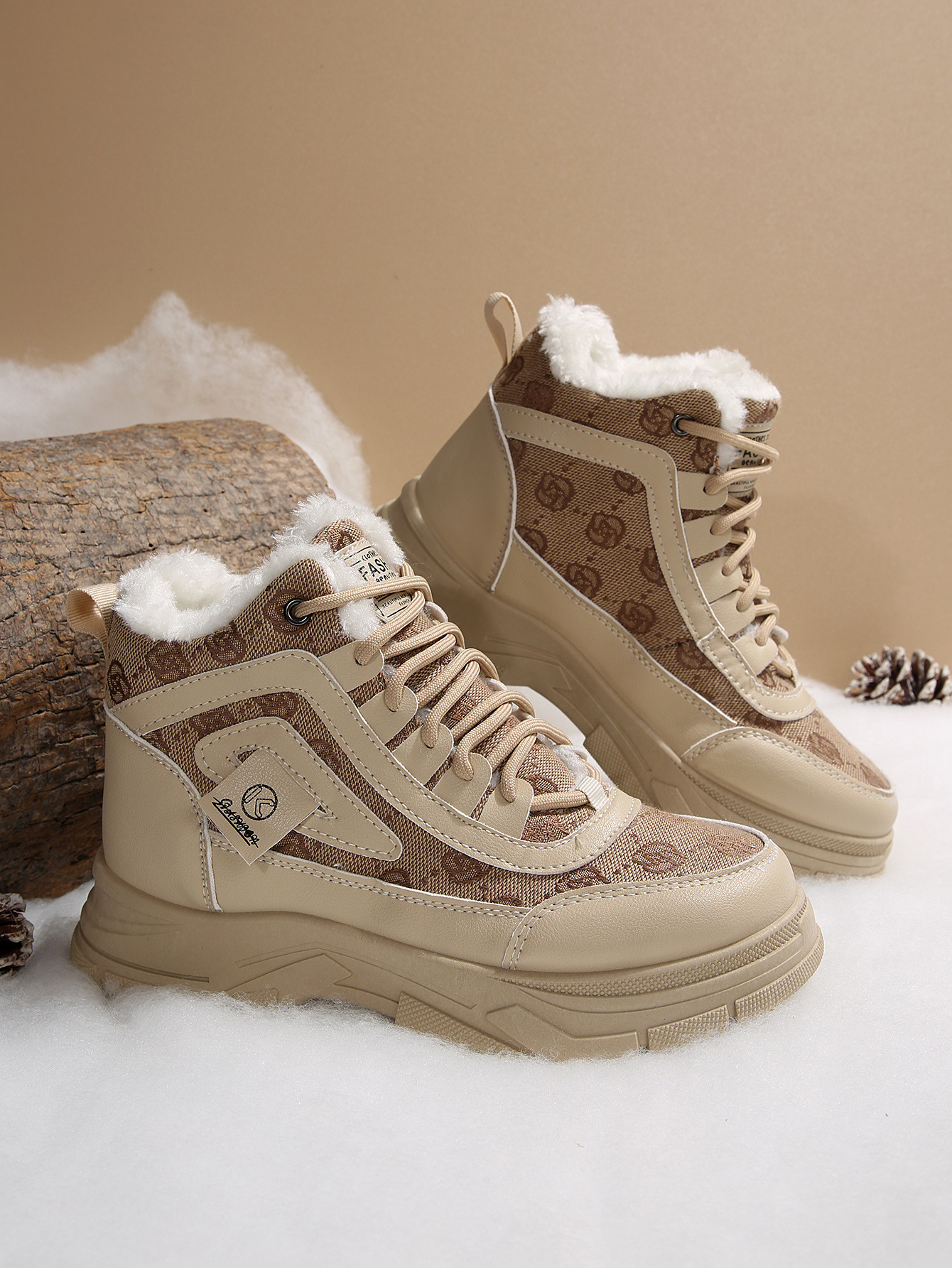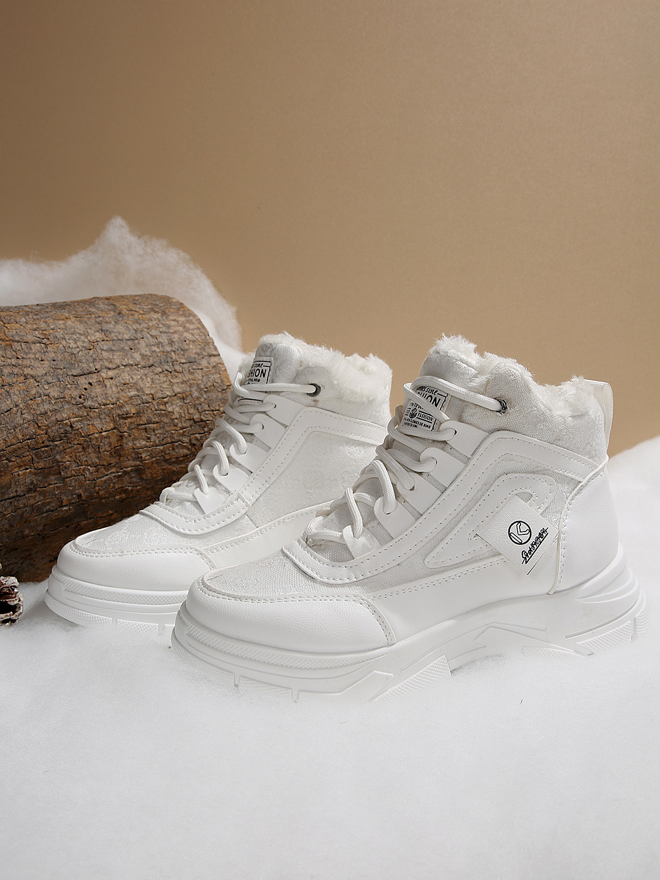 High-top Fleece-lined Dr Martens-style Winter Warm Cotton Shoes Thick-soled Versatile Snow Boots In Plus Sizes