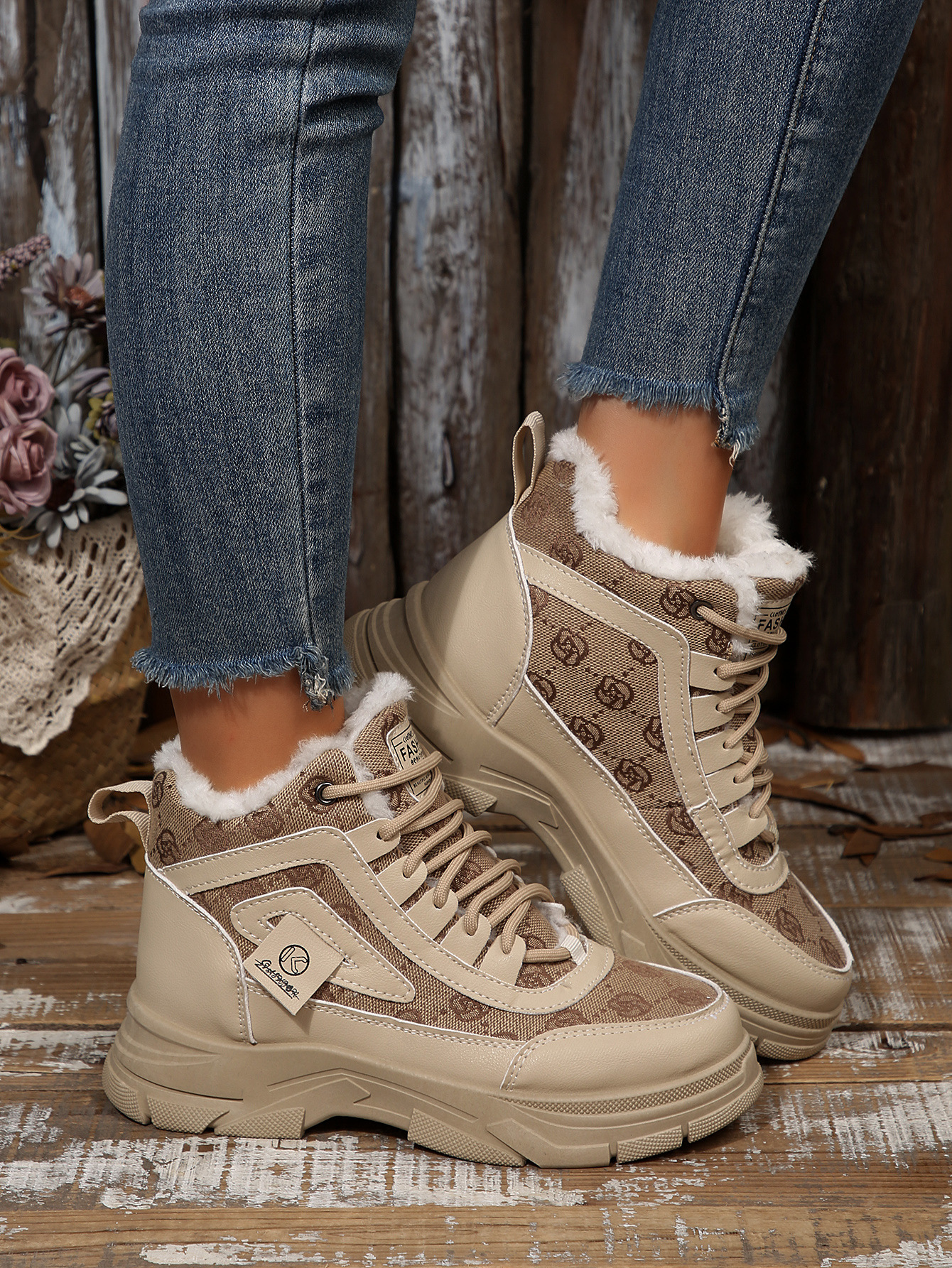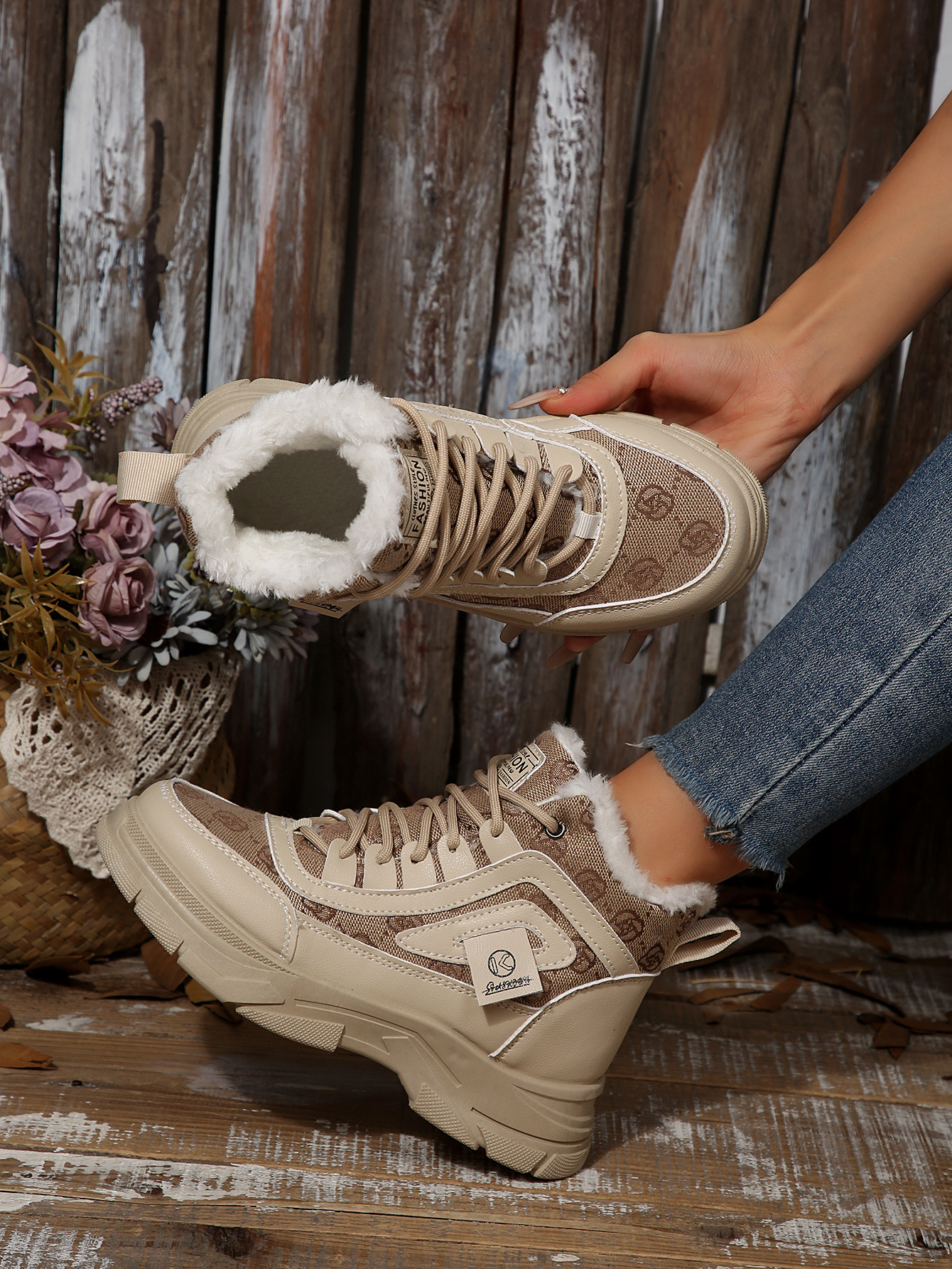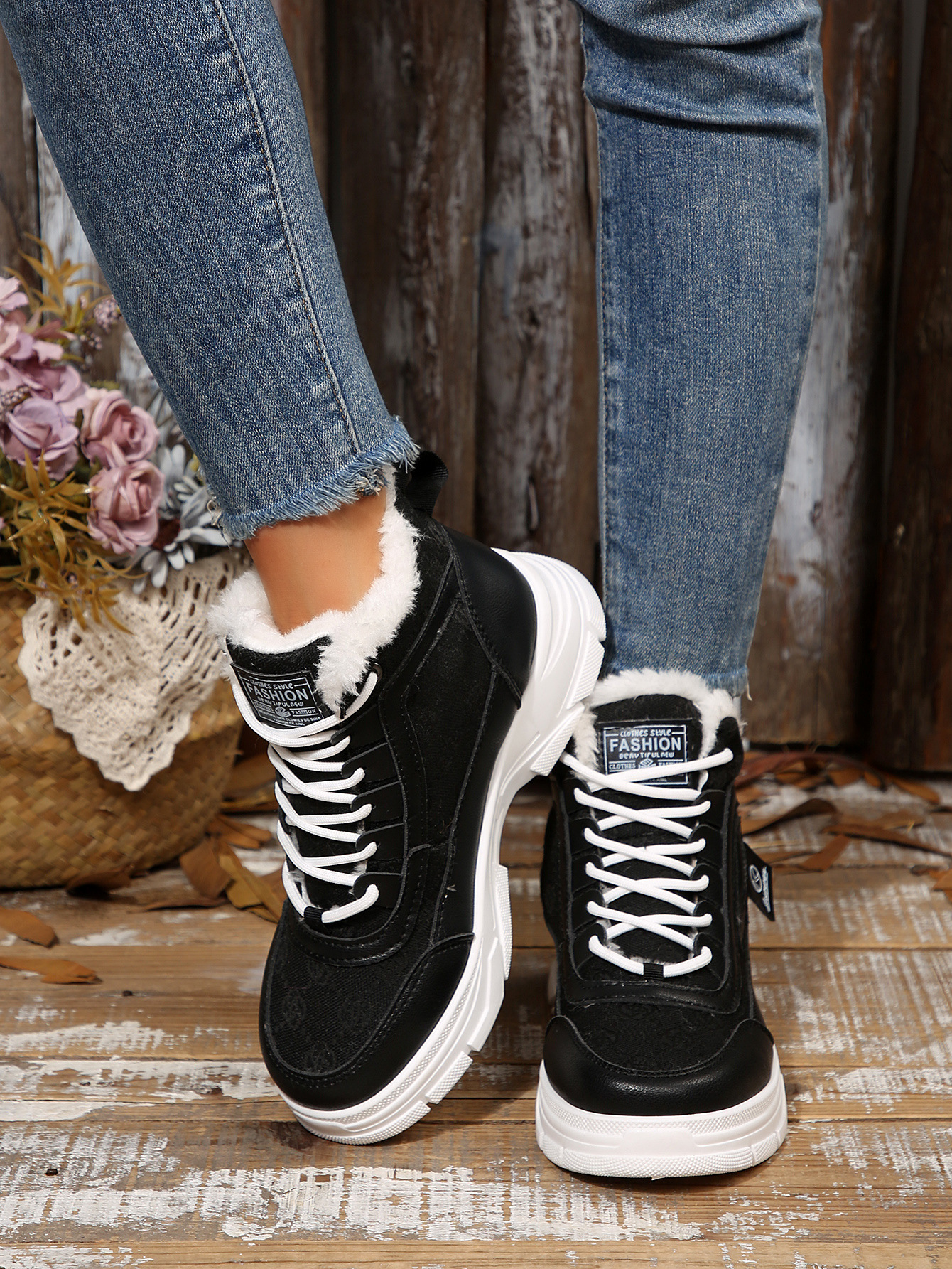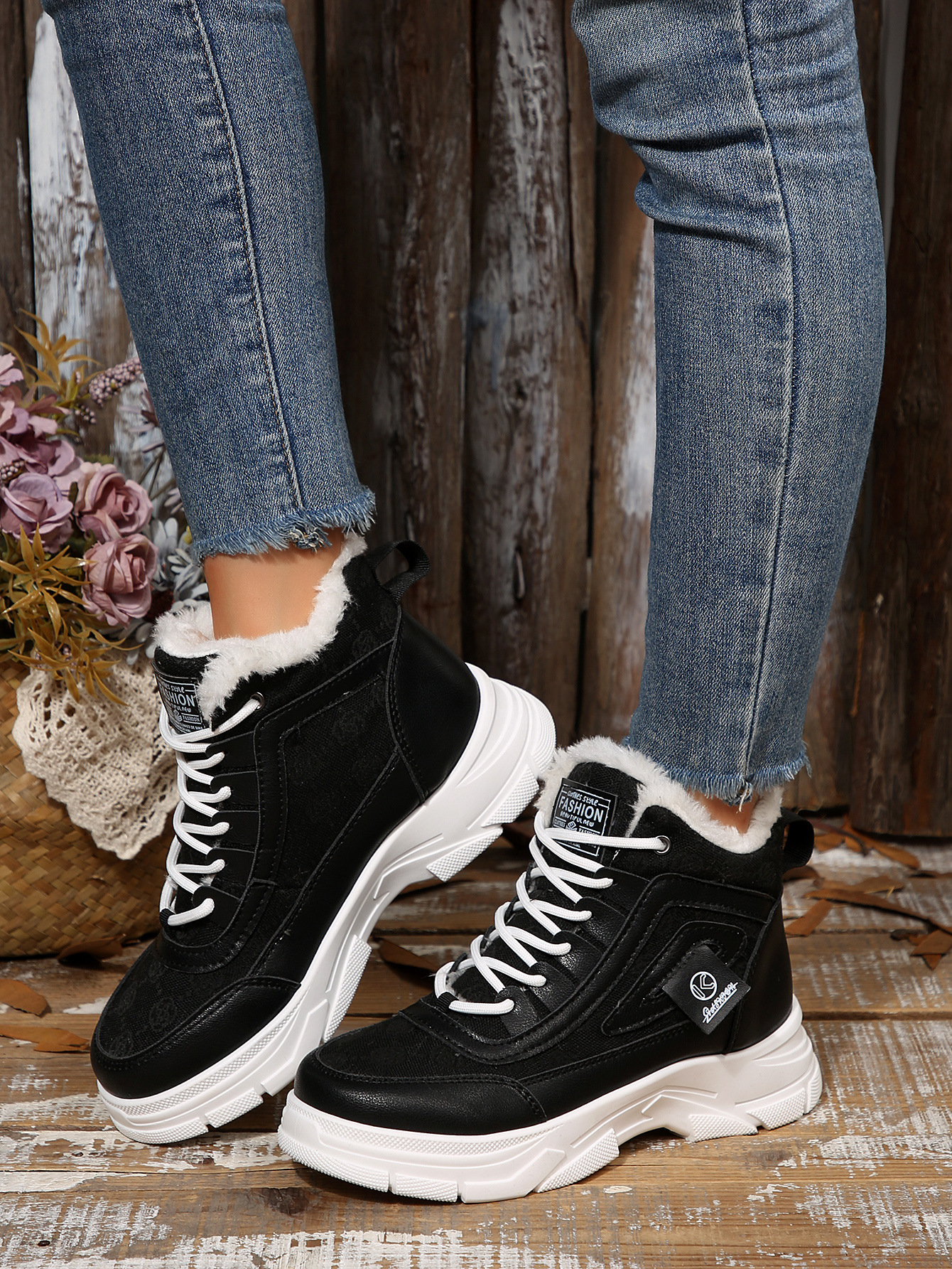 High-top Fleece-lined Dr Martens-style Winter Warm Cotton Shoes Thick-soled Versatile Snow Boots In Plus Sizes