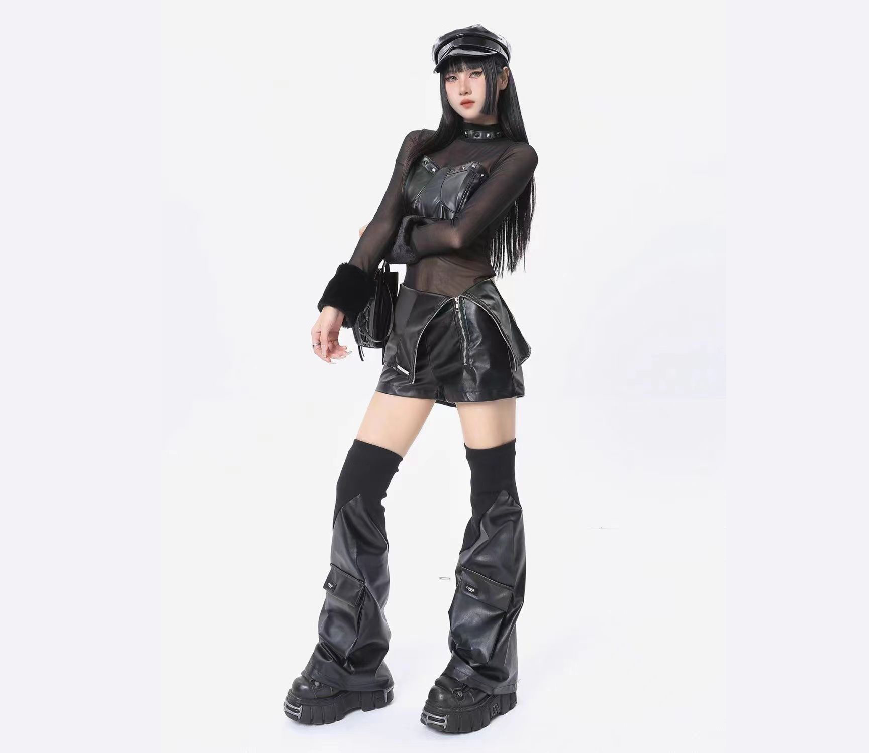 Niche Leather Sock Boots With Stitched 3D Pockets And A Functional