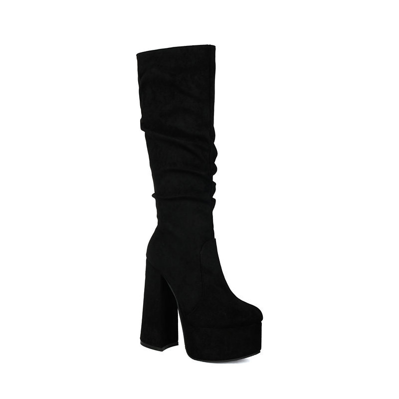 Womens Stretch Suede Waterproof Thick-soled High Heels