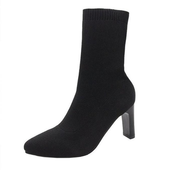 Womens Stretchy Chunky-Heel Square-Toe Suede Skinny Boots